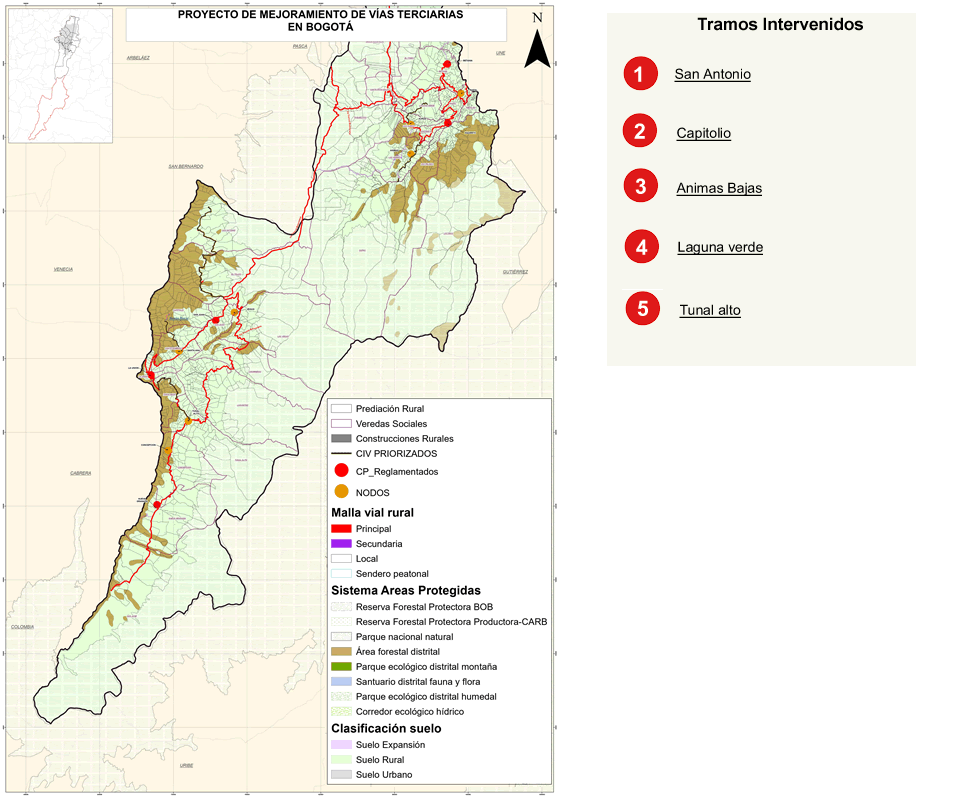 Mejorar la intercomunicación y accesibilidad terrestre de los habitantes rurales de Bogotá D.C., mediante el mejoramiento de la malla vial rural.